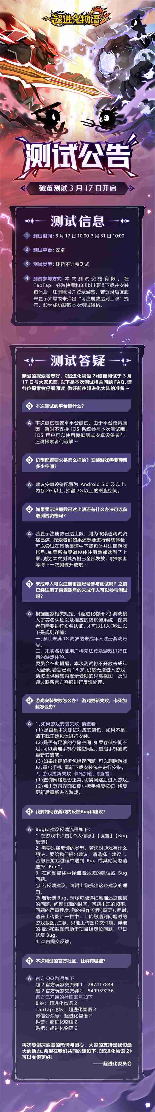 《超進化物語2》首次限號不計費刪檔測試——「破繭測試」將于3月17日開啟,,,,隨我們確認測試細節,,,,明天邁出踏上超進化大陸的第一步吧!!