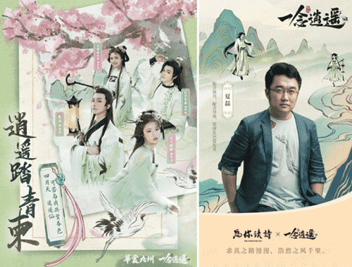 在游戲之外,,,《一念逍遙》一直致力于打造國風修仙原創IP,,以音樂、、、、漫畫,,,,小說等衍生內容去延展豐富游戲內容。。。。上線以來,,整整做了十首歌,,小說應該也是喜馬拉雅平臺今年游戲品類小說收聽量Top1的作品;而在營銷的內容傳播上,,,,《一念逍遙》也一直秉承比較國風的基調,,傳遞詩詞、、、、文化內涵,,,如如清明節定制漢服合作,,,,傳遞中國傳統的清明踏青、、、、清明詩會文化。。