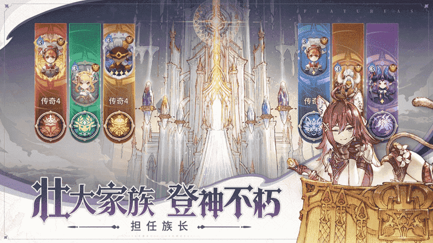 你將體驗到純正王道的冒險劇情,,在這個被偽神入侵的凱斯世界,,,,成神是每一位強者的終極目標,,玩家作為守護者家族的族長,,,,在尋回六大種族成員,,擊退威脅凱斯世界的偽神后,,,即有機會帶領家族晉升為神,,,,登神不朽。。